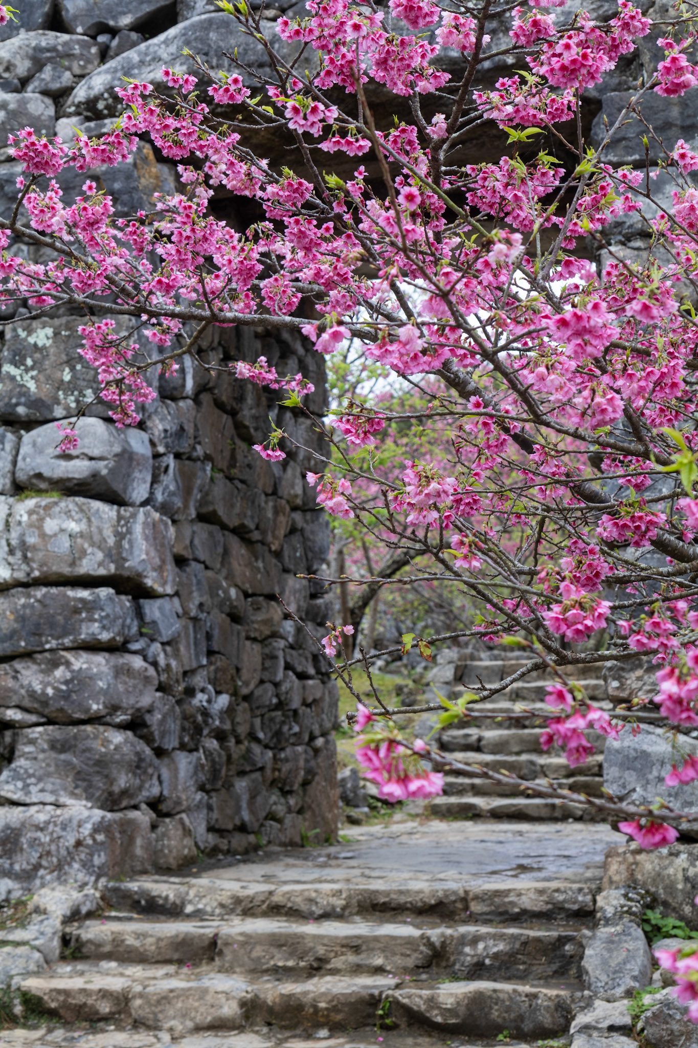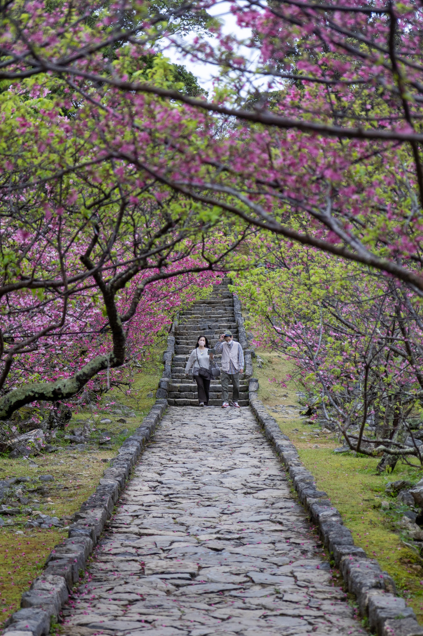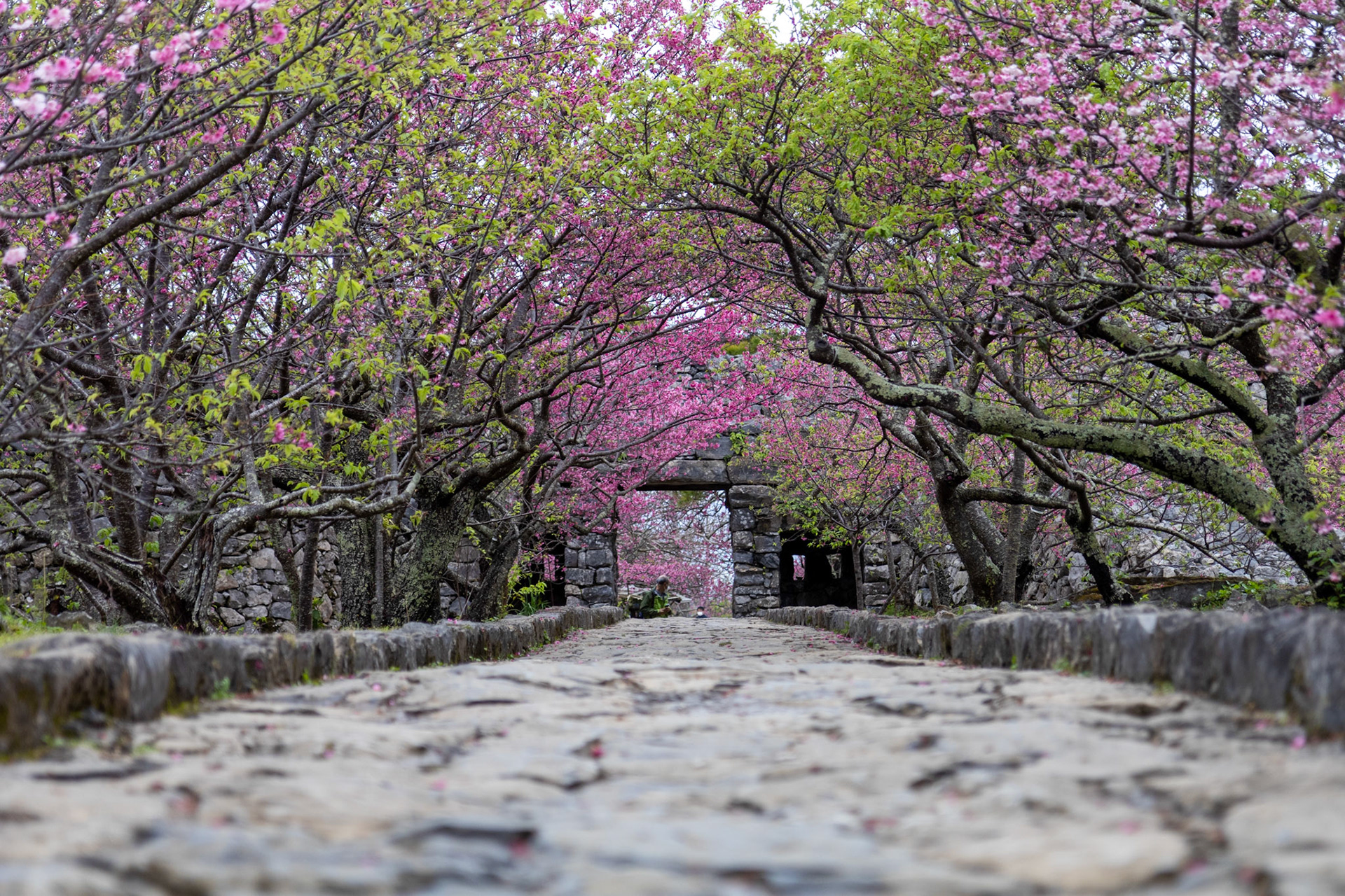 Okinawa Prefecture is an archipelago in Southern Japan with history as the Ryukyu Kingdom. Due to its southern position and warmer climate, cherry blossoms begin to open and fully bloom as early as February.